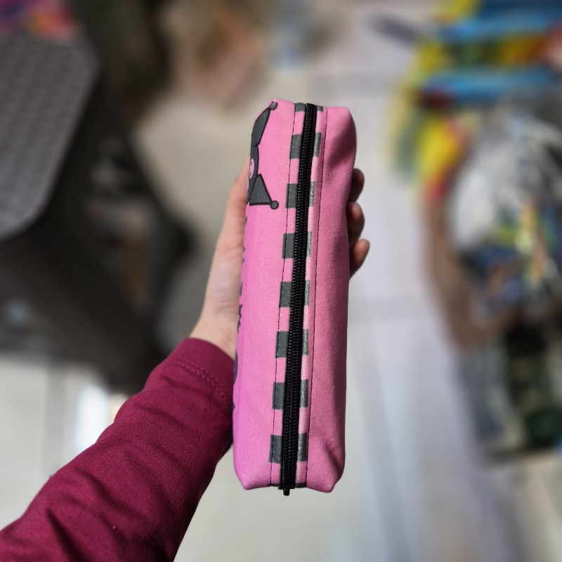 جامدادی تک زیپ پارچه ای کرومی صورتی