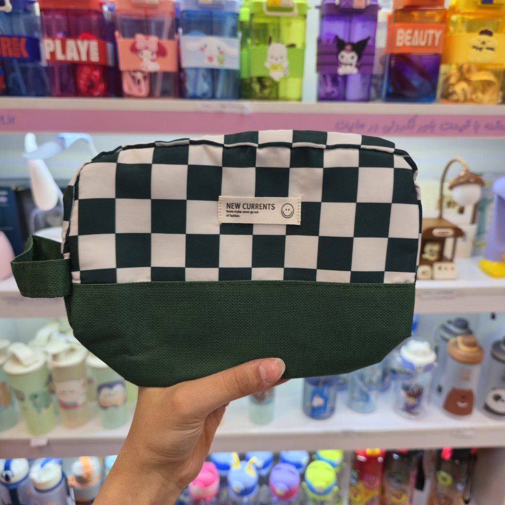 جامدادی موکا پینترستی – طرح شطرنجی یک جامدادی شیک و مینیمال با طرح شطرنجی خاص در دو رنگ آبی و سبز.