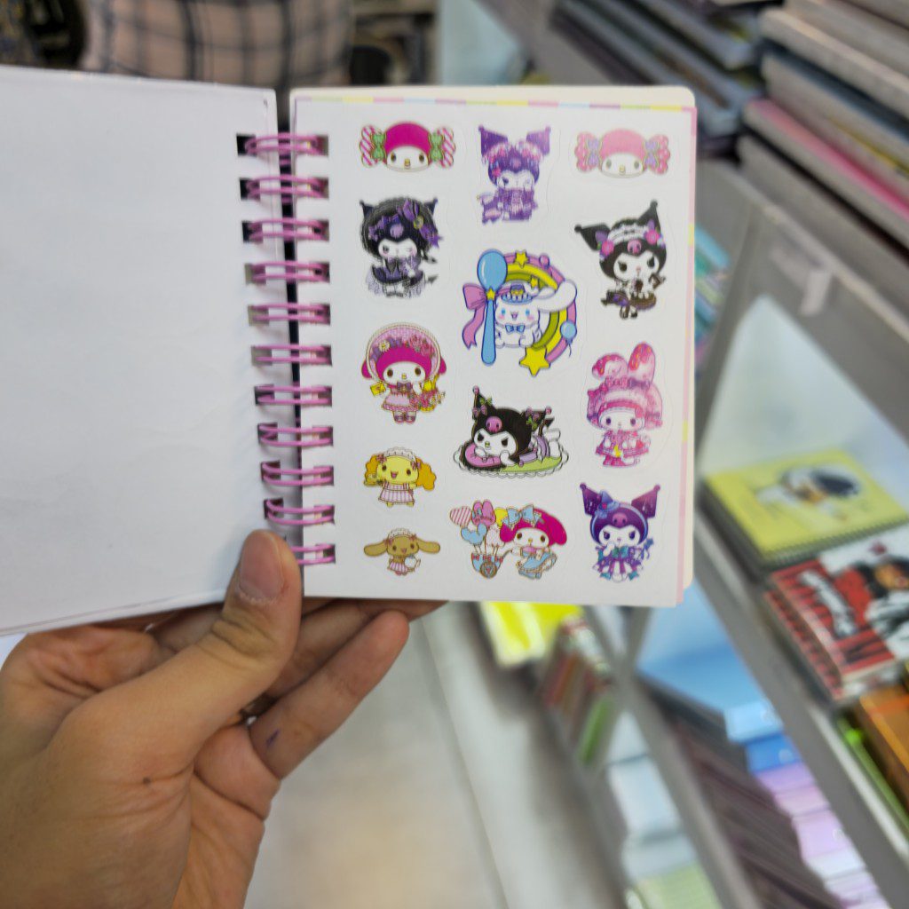برگههای دفترچه آکواریومی سانریو استیکردار دارای حاشیههای طرحدار کرومی، سینامورول و ملودی هستند که زیبایی خاصی به صفحات میبخشند.