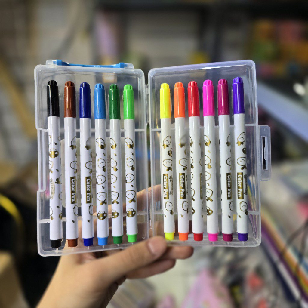 ماژیک رنگ آمیزی 12 رنگ جعبه طلقی تخت