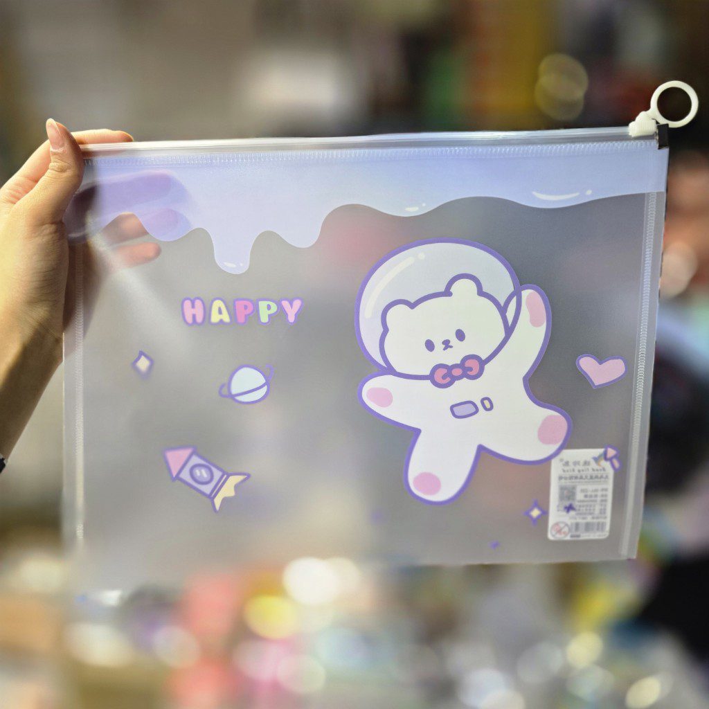 پوشه زیپی مغار دار سایز a4 خرس فضانورد آبی
