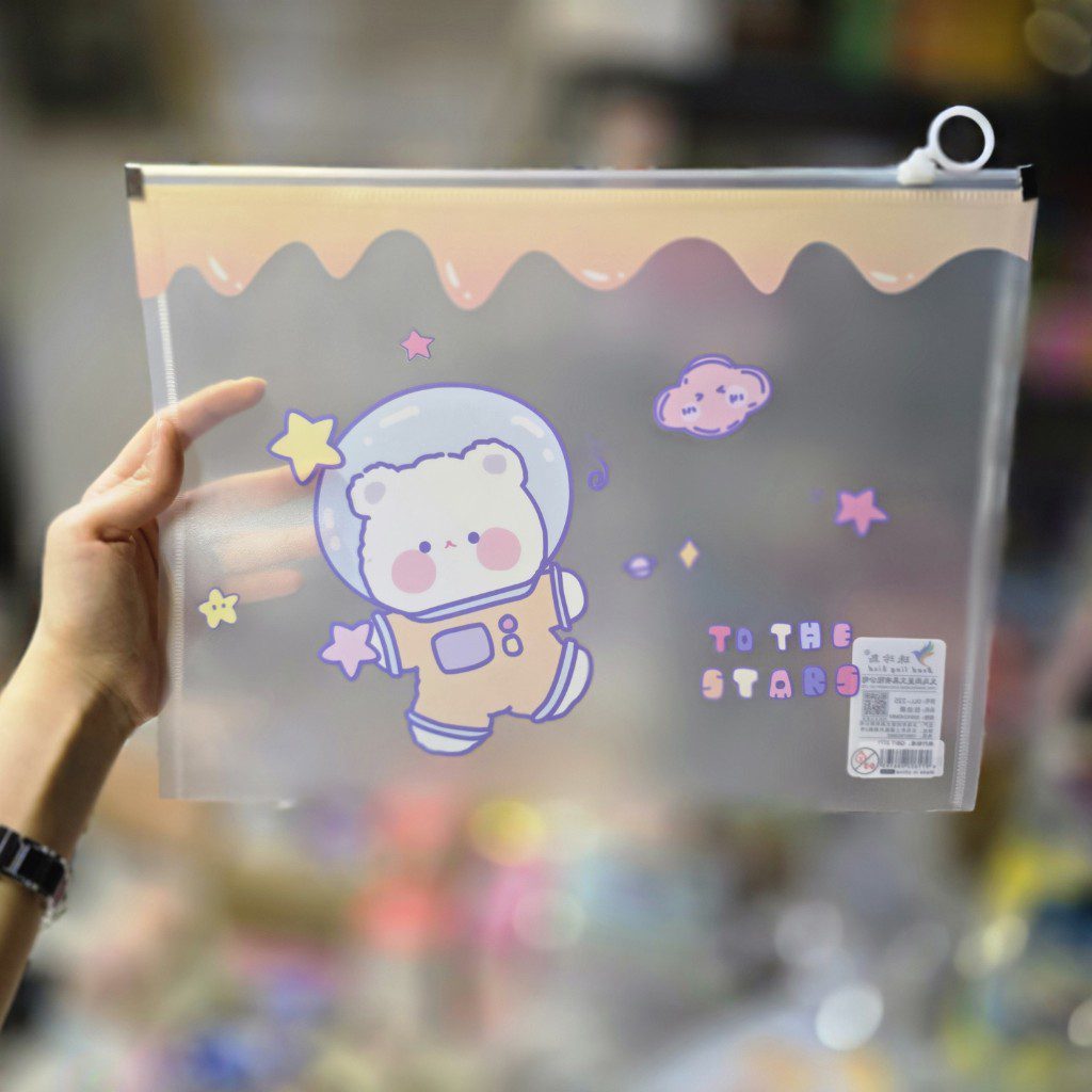 پوشه زیپی مغار دار سایز a4 خرس فضانورد گلبهی