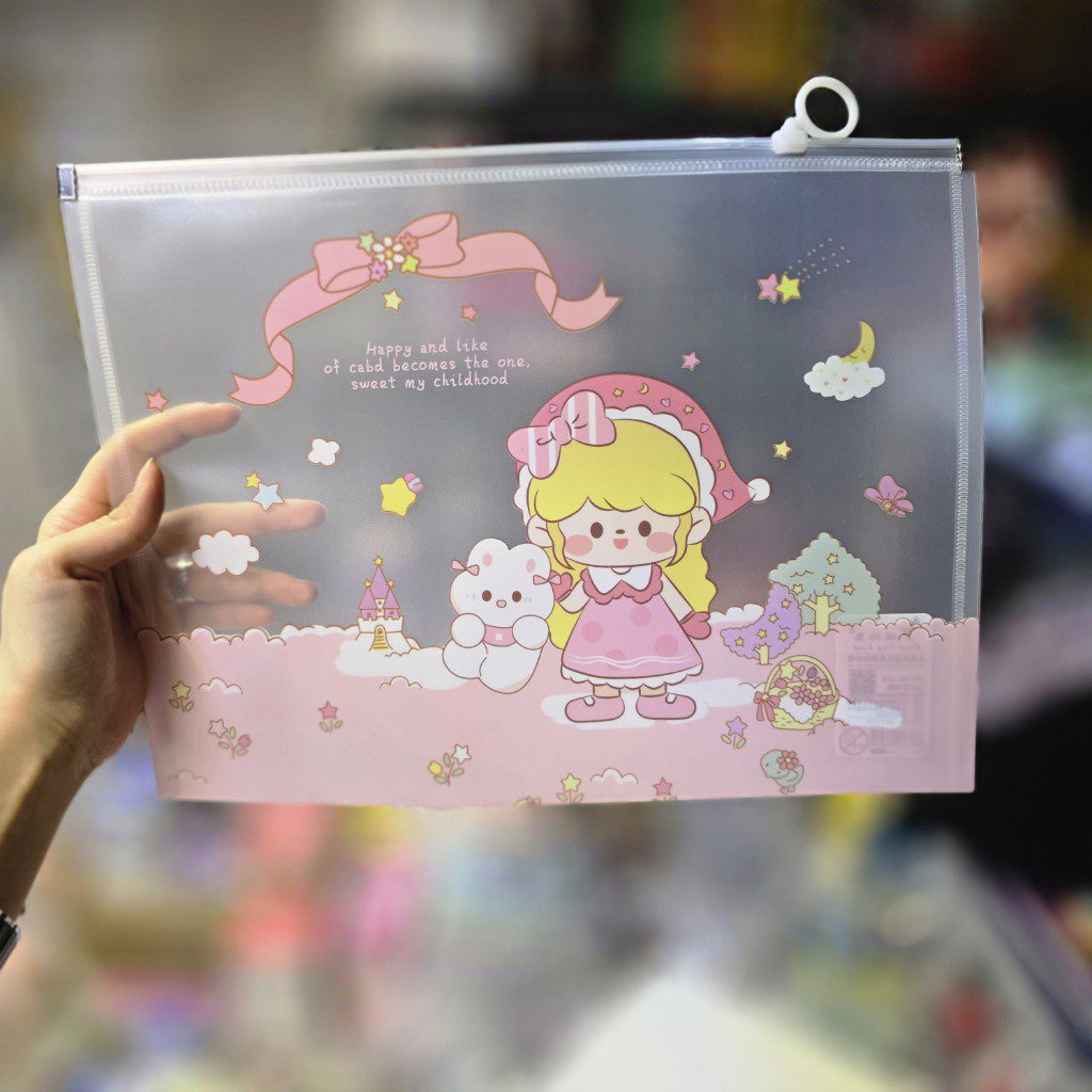 پوشه زیپی مغار دار سایز a4 دختر صورتی