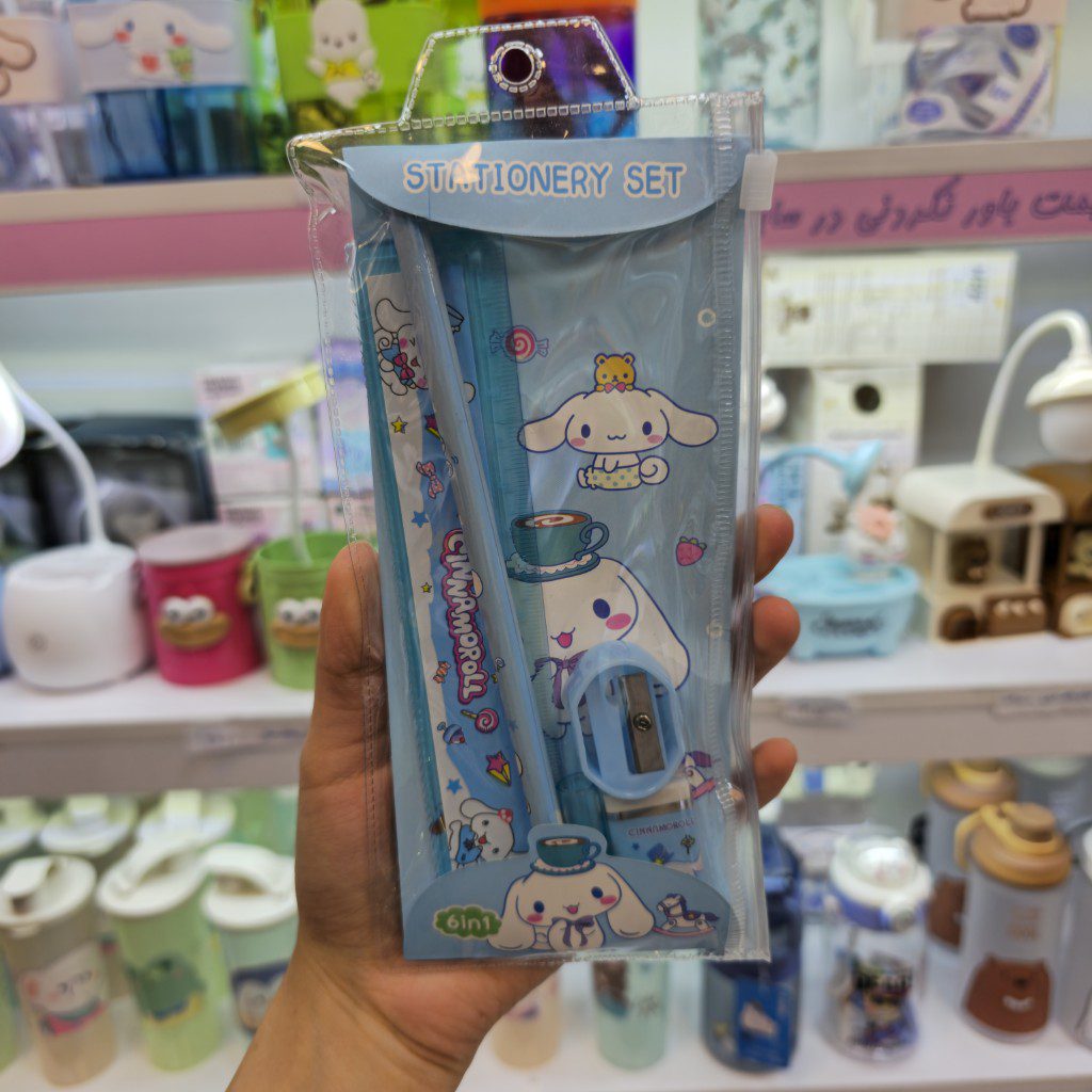 پک تحریر 6 تکه سینامورول شامل تراش،پاک کن،درب مداد،مداد،خط کش و جامدادی زیپ کیپ