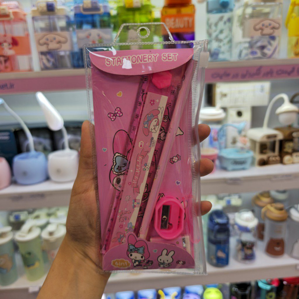 پک تحریر 6 تکه ملودی شامل تراش،پاک کن،درب مداد،مداد،خط کش و جامدادی زیپ کیپ