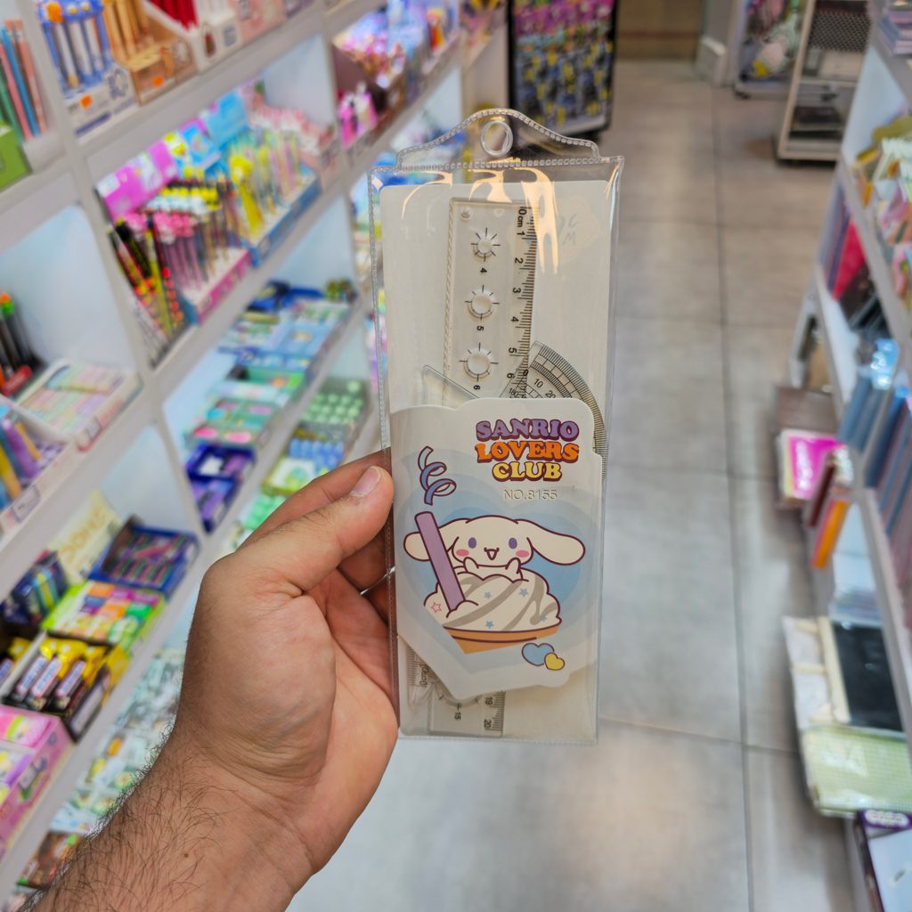 پک خطکش سانریو برند محبوب Sanrio این بار پک کامل خطکش، گونیا و نقاله شیشهای را عرضه کرده تا دانشآموزان و دانشجویان بتوانند یک ست محکم و کاربردی در اختیار داشته باشند. این مجموعه شامل خطکش، گونیا و نقاله شفاف است که هم ظاهر ساده و حرفهای دارند.
